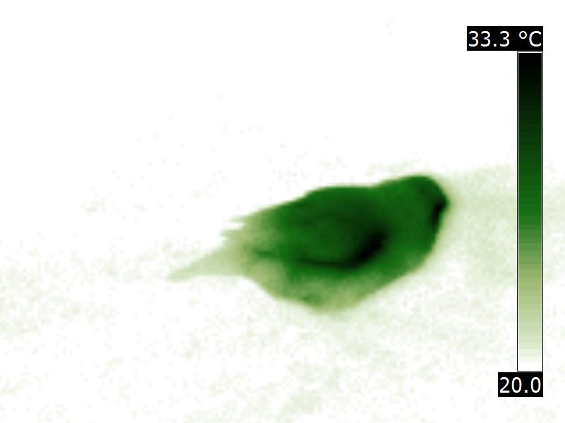 Vision thermographique selon palette graphique Night Vision inversée d'un oiseau diamant mandarin.